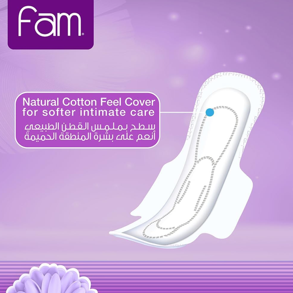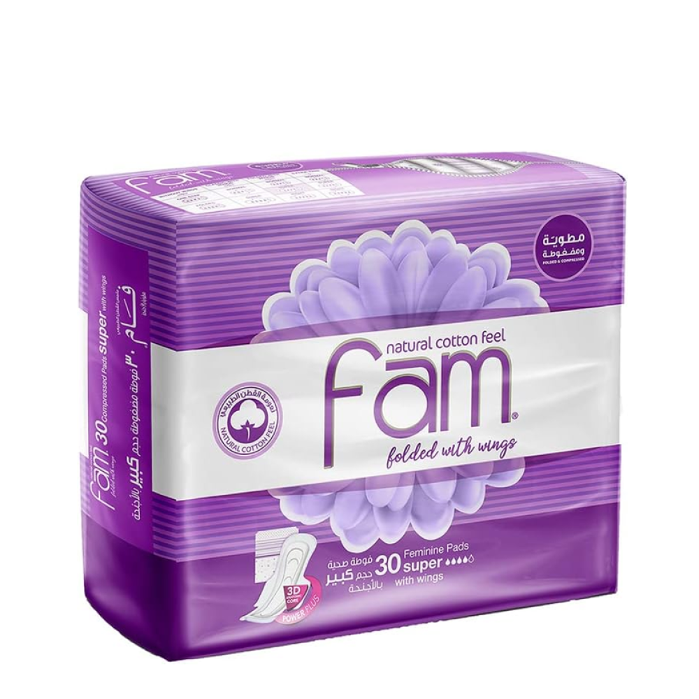 فوط فام الحجم الكبير بالأجنحة توفر حماية يومية فائقة وراحة مثالية طوال اليوم. تأتي العبوة بحجم 300 جم لتمنحك امتصاصًا قويًا وتصميمًا مريحًا يناسب البشرة الحساسة ويمنع التسرب.