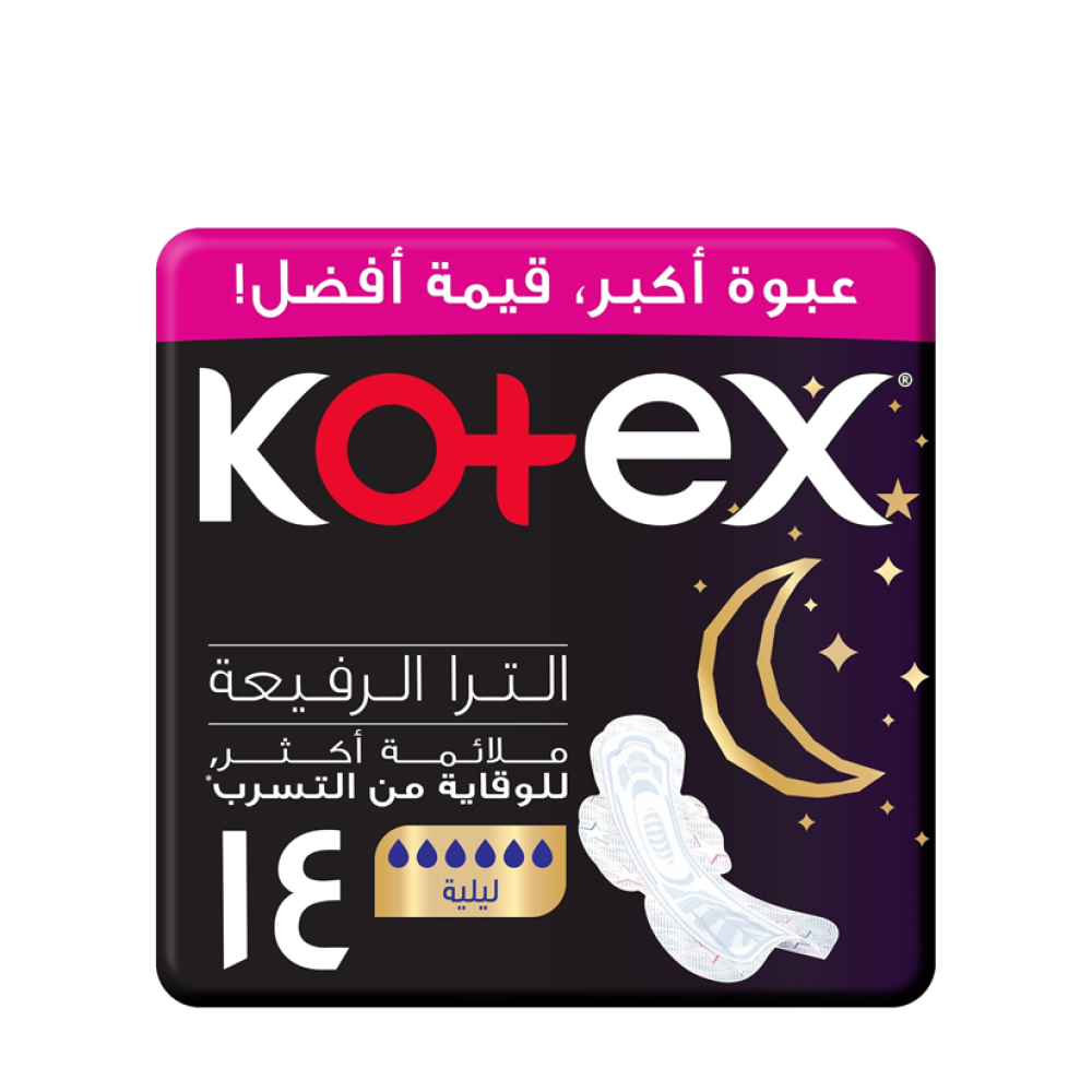 فوط كوتكس الليلية بالأجنحة ألترا رفيعة توفر حماية فائقة أثناء النوم مع راحة مثالية للبشرة الحساسة. تأتي العبوة بحجم 280 جم لتمنحك امتصاصًا قويًا ونعوم...