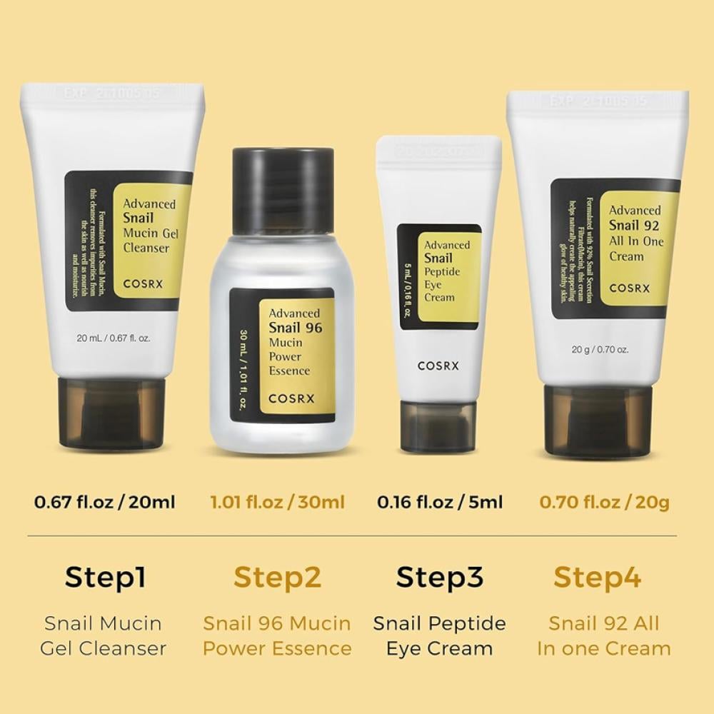 مجموعة كوسركس الحلزون للعناية بالبشرة 4 في 1