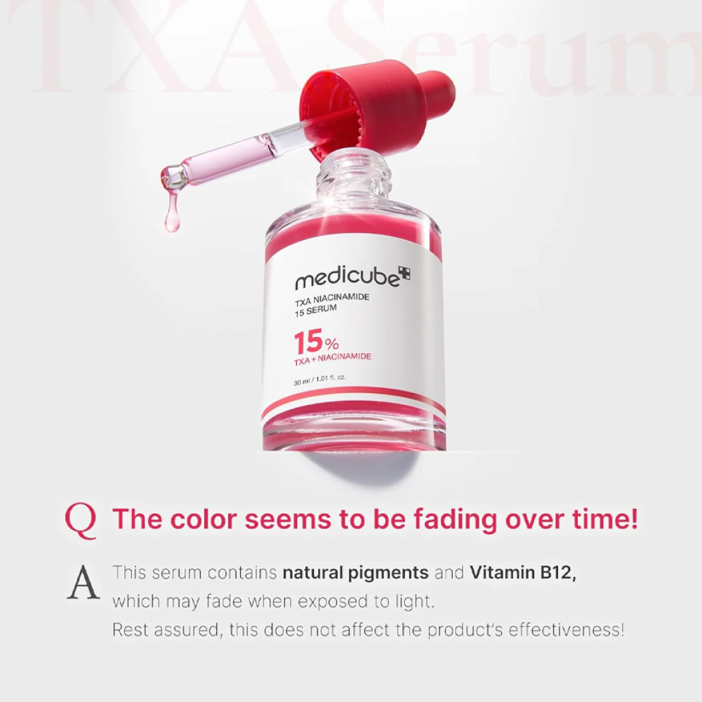 سيروم حمض الترانيكساميك والنياسيناميد 15% من ميديكيوب بحجم 30 مل يساعد على تفتيح البشرة وتقليل البقع الداكنة والتصبغات. تركيبة فعالة تعمل على توحيد لون البشرة، تحسين إشراقتها، وترطيبها بعمق للحصول على مظهر صحي وناعم.