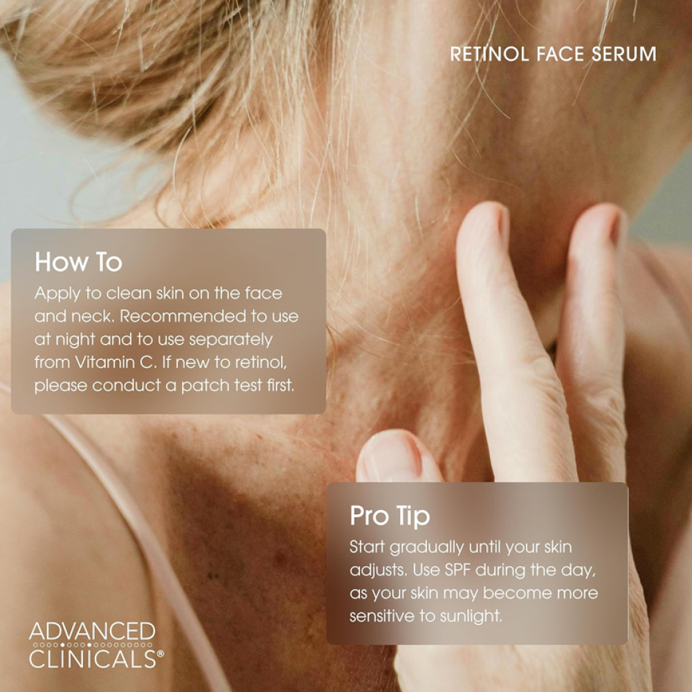 Advanced Clinicals Retinol Serum 52ml is a concentrated formula that reduces fine lines and wrinkles, improves skin elasticity, and promotes cell rene...