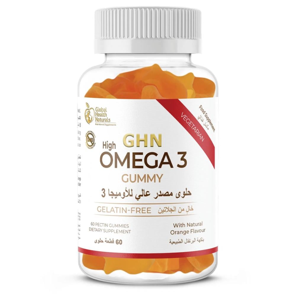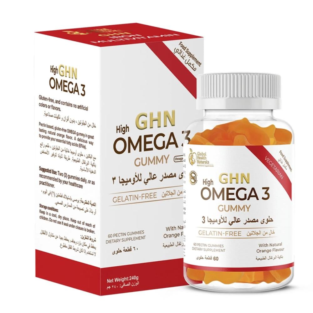 Support heart, brain, and immune health with GHN Omega-3 chewable tablets, containing 180mg of essential fatty acids. Ideal for both adults and children, with a pleasant taste and no need for water.