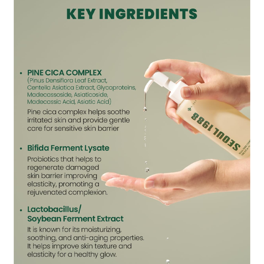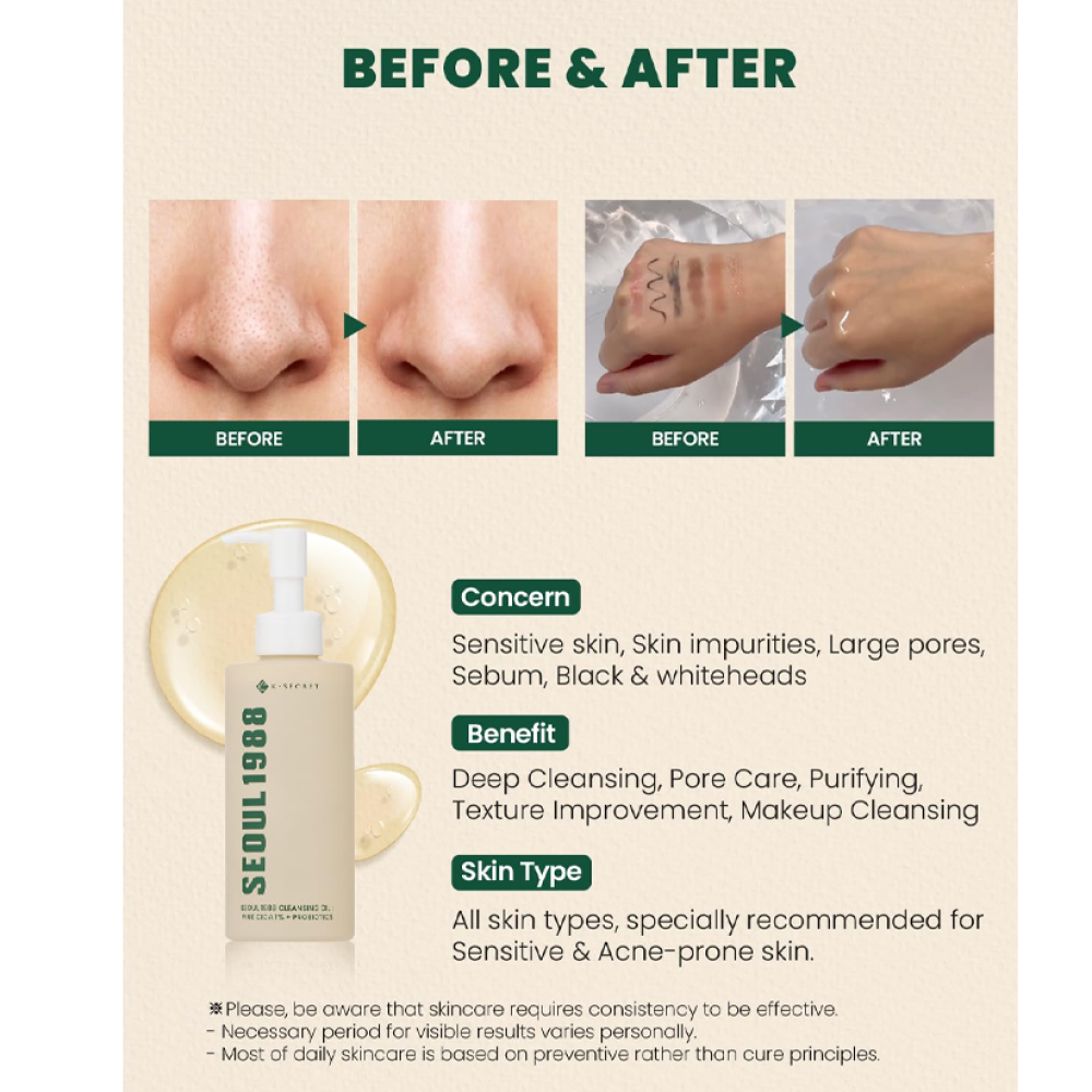 Secret Seoul 1988 Pine + Probiotics Cleansing Oil 200ml by K-Secret deeply cleanses the skin while maintaining moisture balance. Formulated with natural pine extract and probiotics, it dissolves makeup and impurities gently, leaving the skin calm, clean, and refreshed.