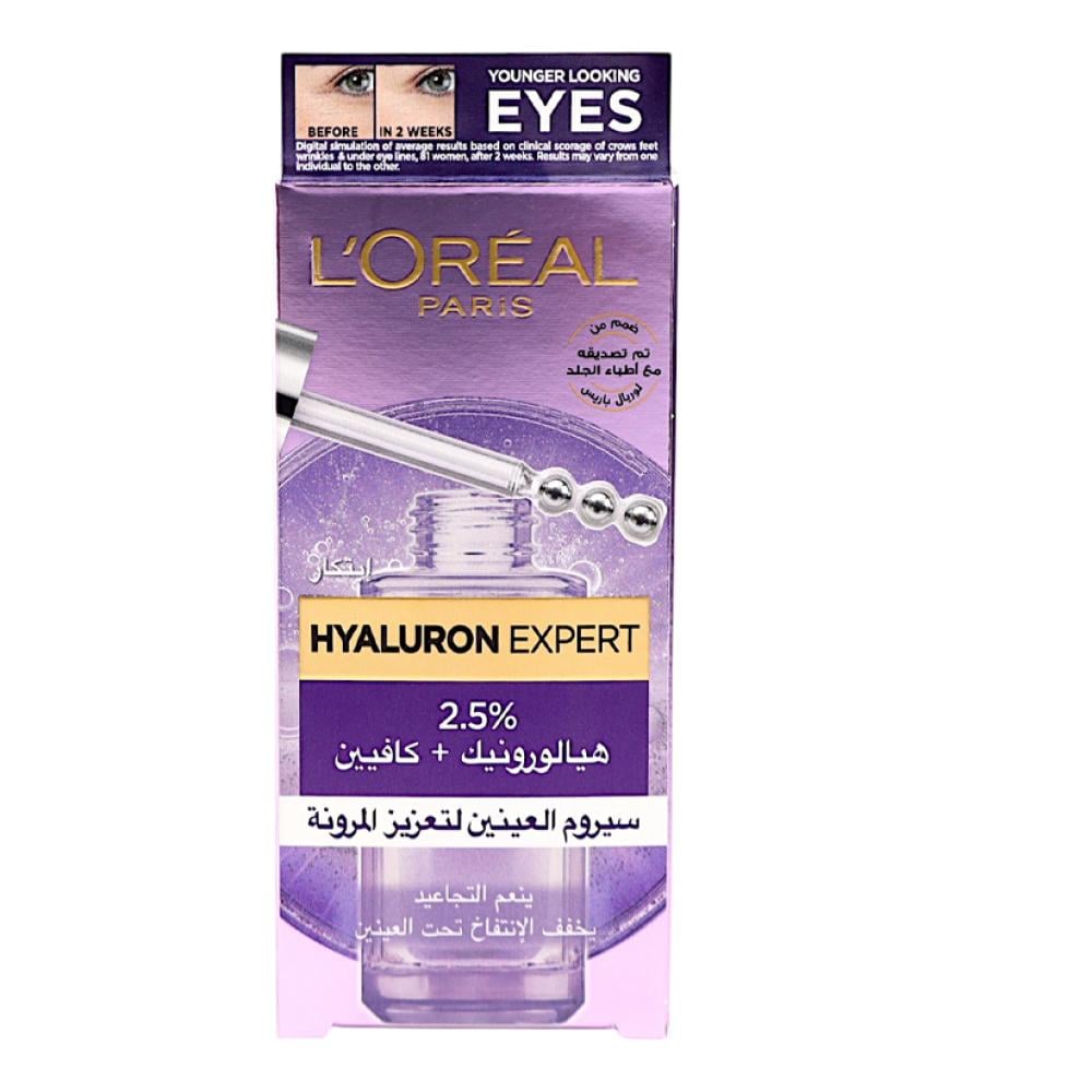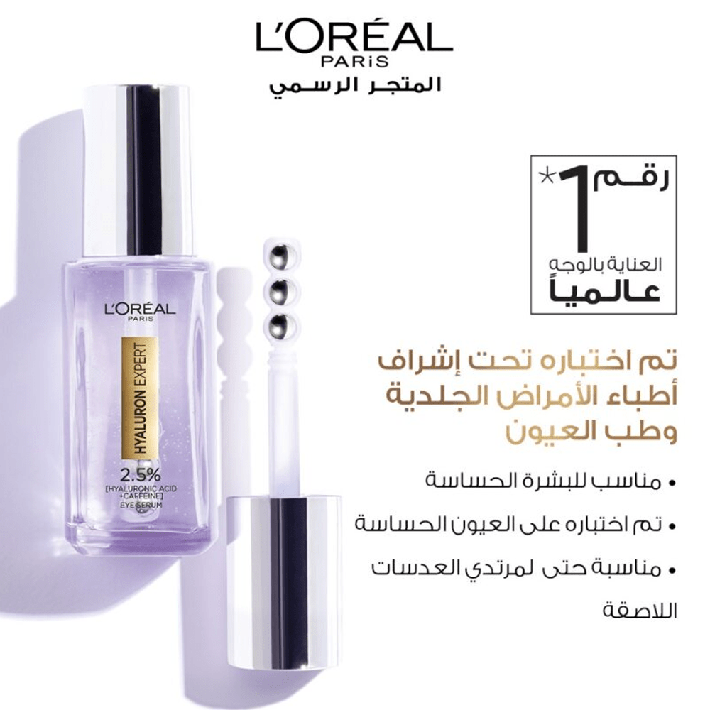 L'Oréal Paris Hyaluron Expert Eye Serum (20ml) is enriched with 2.5% Hyaluronic Acid and Caffeine to visibly reduce puffiness and dark circles. This l...