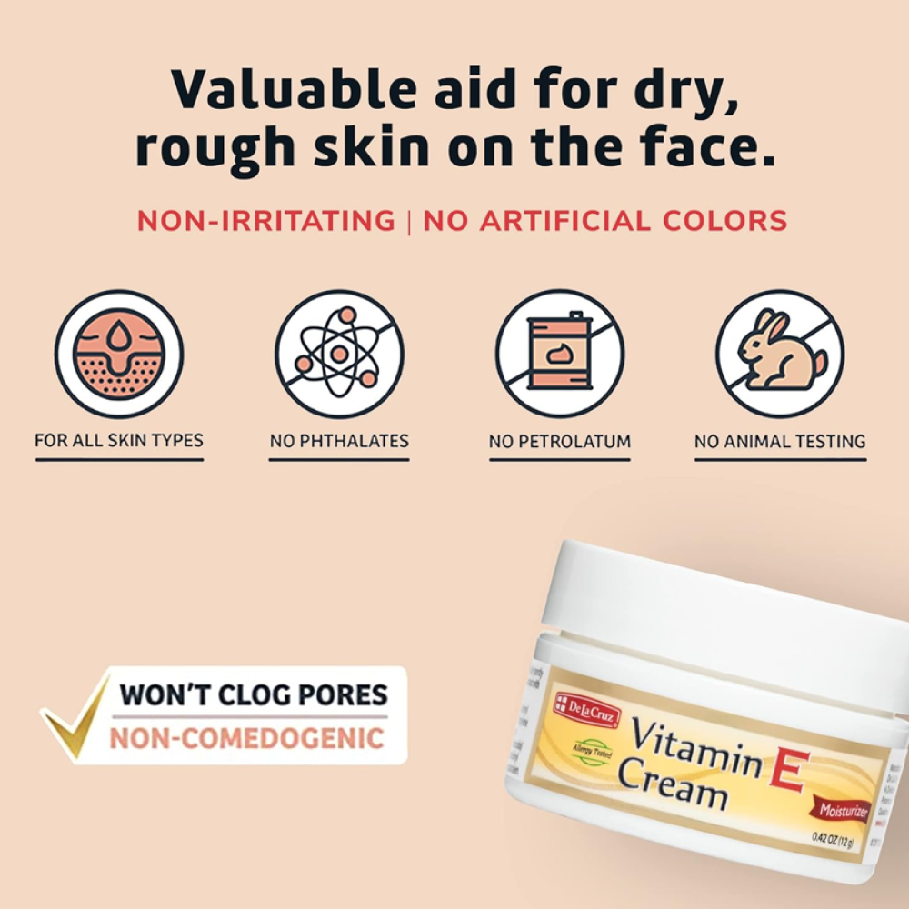 Pamper your skin with De La Cruz Vitamin E Cream (12g), a concentrated moisturizer that softens and nourishes dry skin. Enriched with antioxidant Vita...