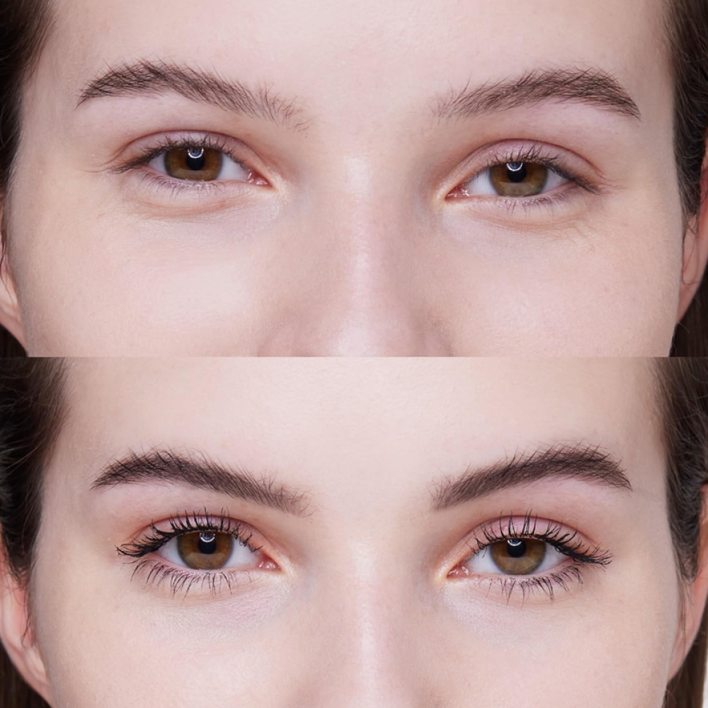 Start at the lash base and sweep the brush upward in a zigzag motion for maximum volume and density. Apply extra coats for added drama.