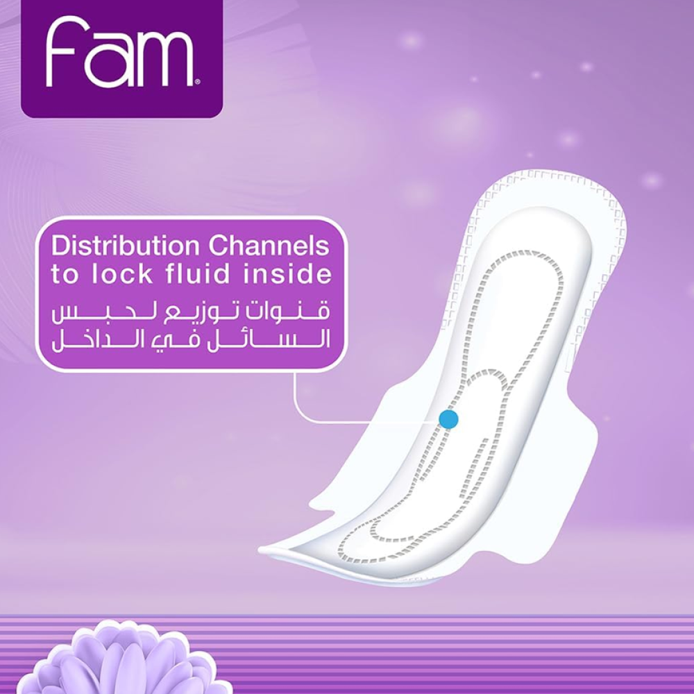 Fam Folded Regular Sanitary Pads with Wings provide comfortable daily protection and soft touch. The 270g pack ensures effective absorption for sensit...