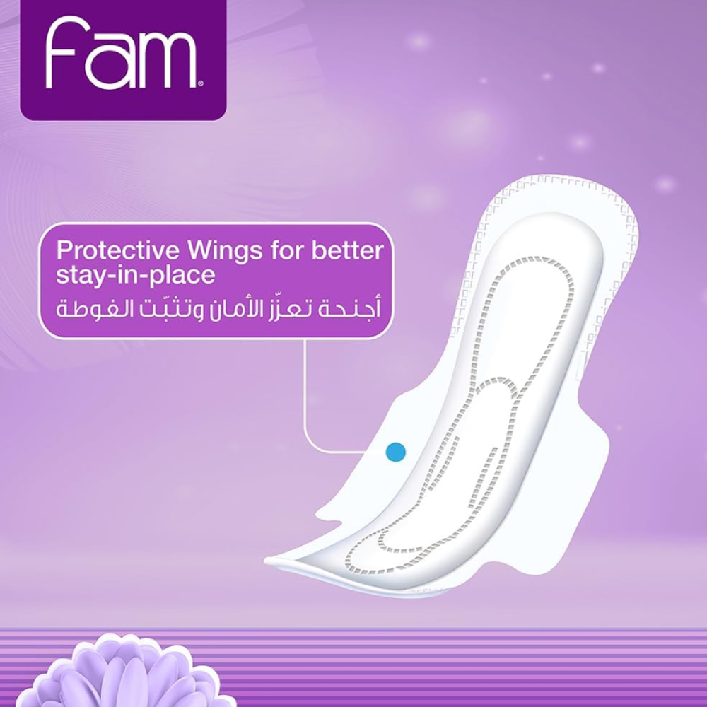 Fam Ultra-Thin Large Sanitary Pads with Wings Double Pack provides maximum protection and comfort all day long. The 320g pack ensures reliable absorption and freshness with a soft and breathable design suitable for sensitive skin.