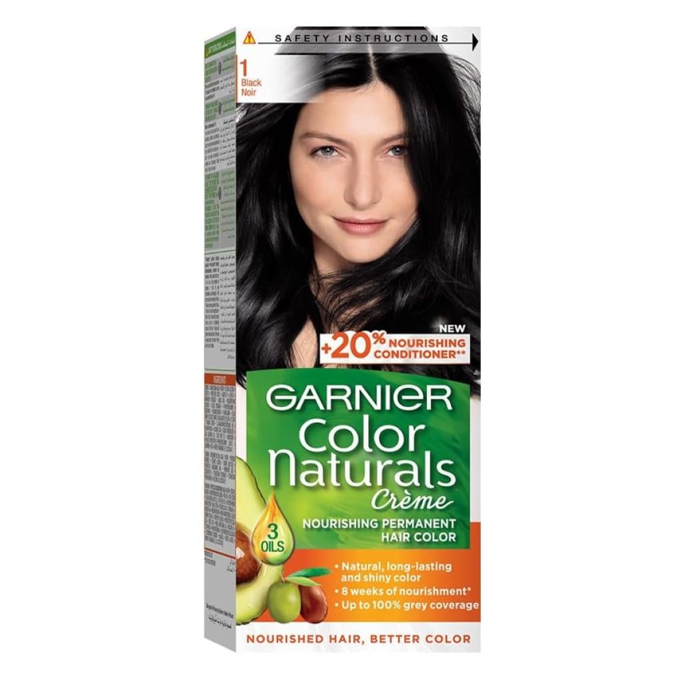 Achieve long-lasting, natural-looking black hair with Garnier Color Naturals Hair Dye Black 1, enriched with nourishing oils like olive, avocado, and ...
