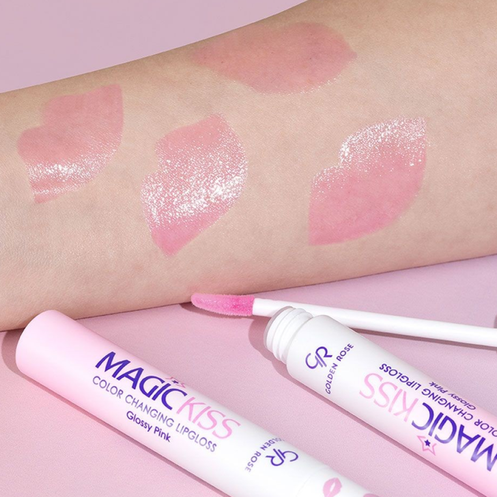 Golden Rose Magic Kiss Lip Gloss in shiny pink, 10ml, delivers radiant shine and a smooth finish with no stickiness—leaving lips fuller, brighter, and irresistibly soft.