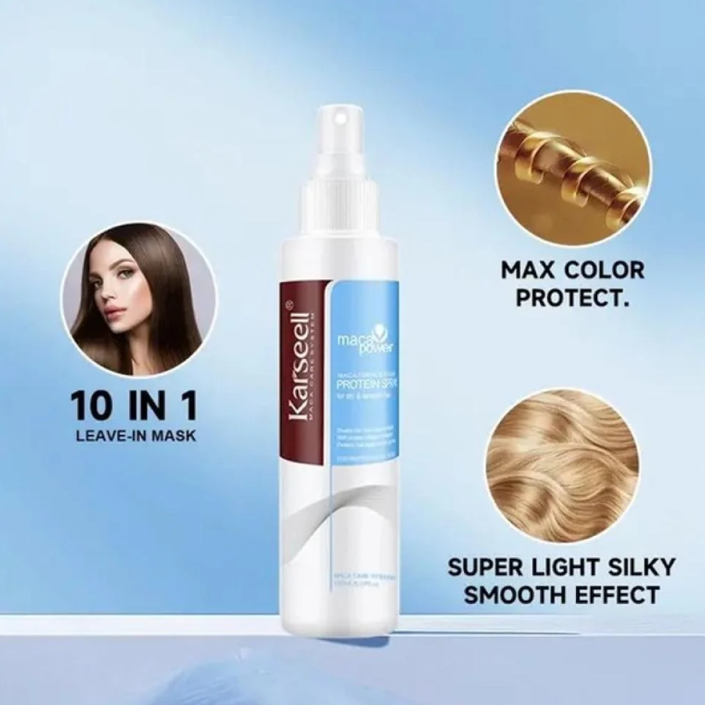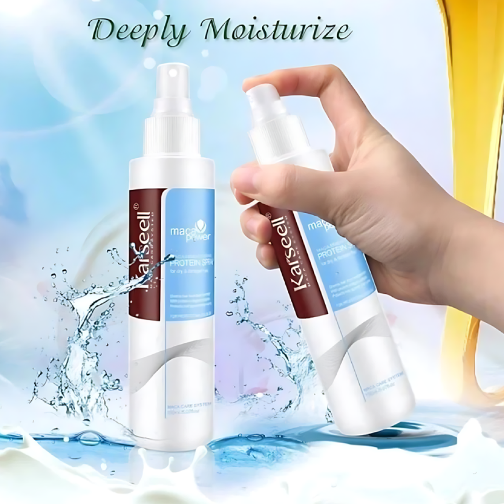 Karsil Leave-In Hair Spray with Maca and Protein Extract smooths and repairs damaged hair caused by styling and environmental factors. With a 200ml size, it deeply hydrates and softens hair without weighing it down.