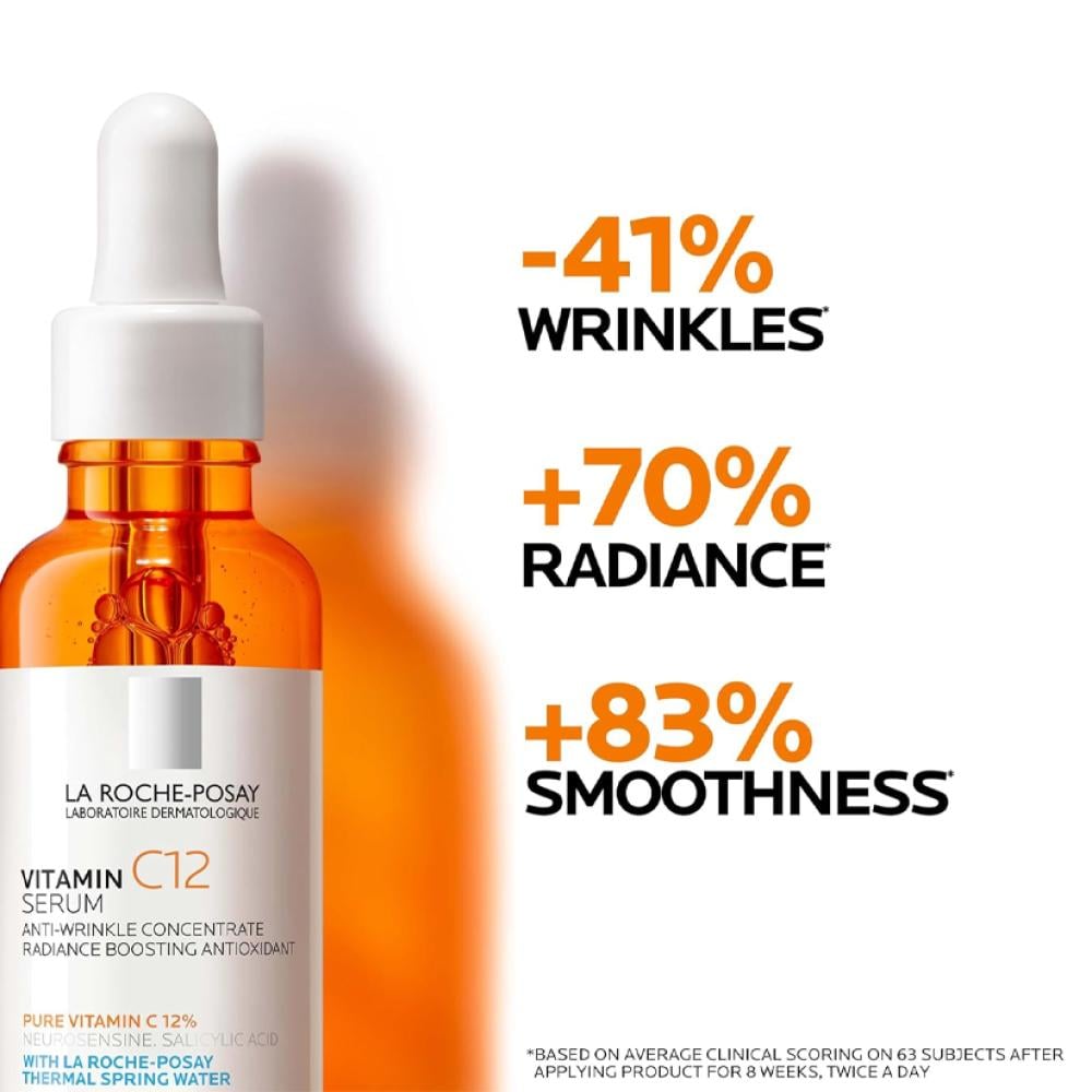 La Roche-Posay Pure Vitamin C 12% Serum, in a 30ml bottle, instantly boosts skin radiance with a high concentration of pure vitamin C. Known for its antioxidant power, it helps reduce pigmentation, even out skin tone, and improve skin texture and elasticity.
