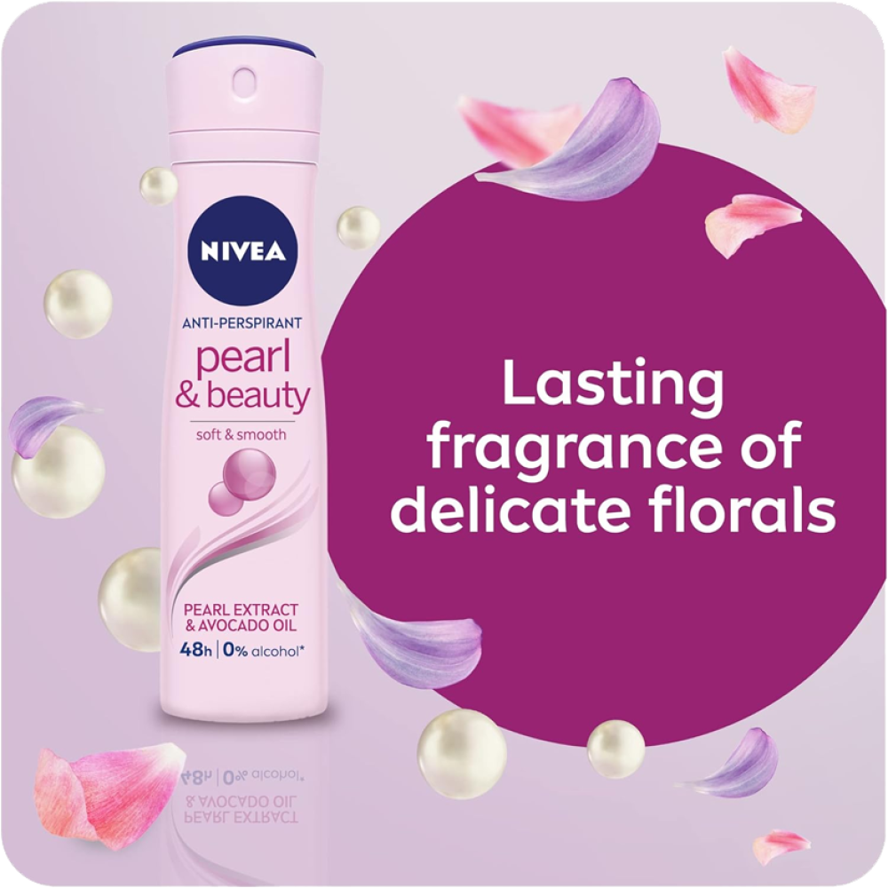 Stay fresh and confident all day with Nivea Pearl & Beauty Spray Deodorant for Women. Infused with pearl extract, this gentle formula provides 48-...