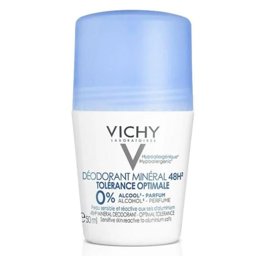 Vichy deodorant roll-on is aluminum salts free and enriched with natural minerals, offering long-lasting freshness and protection. Its gentle formula is suitable for sensitive skin, leaving it comfortable and clean without clogging pores.